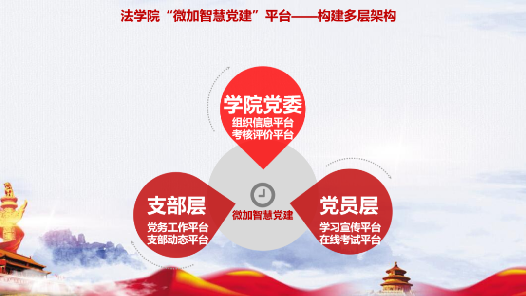 为了响应国家党建的新理念及新思想战略,williamhill英国党委将传统党建工作和互联网理念实行完美结合,构建以学院党委层、支部层、党员层三层数据结构为主线和组织信息、考核评价、党务工作、支部动态、学习宣传、在线考试六大平台的微加智慧党建。