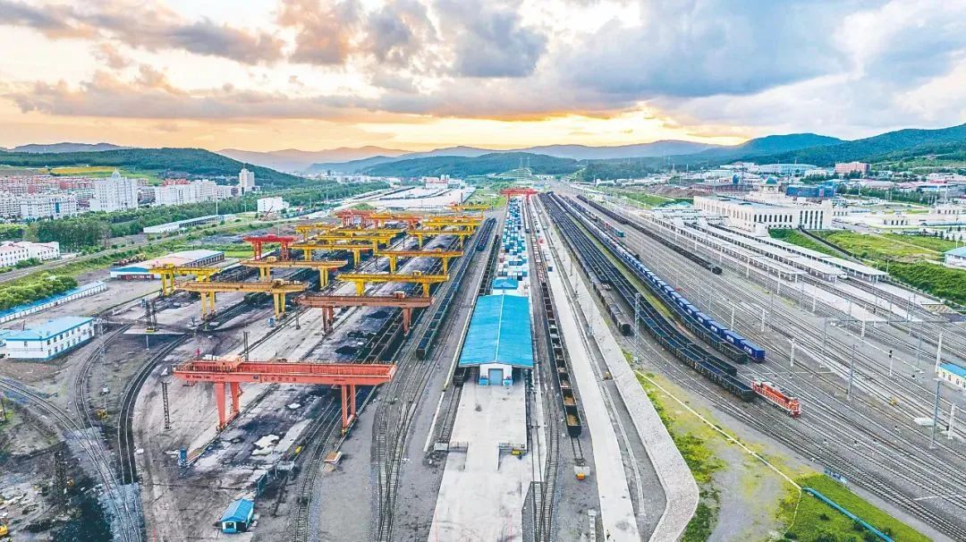 党的二十届三中全会《决定》强调,完善推进高质量共建“一带一路”机制。截至8月20日,中欧班列“东通道”满洲里、绥芬河、同江铁路口岸累计通行量突破30000列、发送货物291万标箱,实现连年增长,呈现量质齐升的良好态势,为服务高质量共建“一带一路”注入了新动能。图为近日拍摄的黑龙江绥芬河站北场全貌。新华社发(曲艺伟 摄)