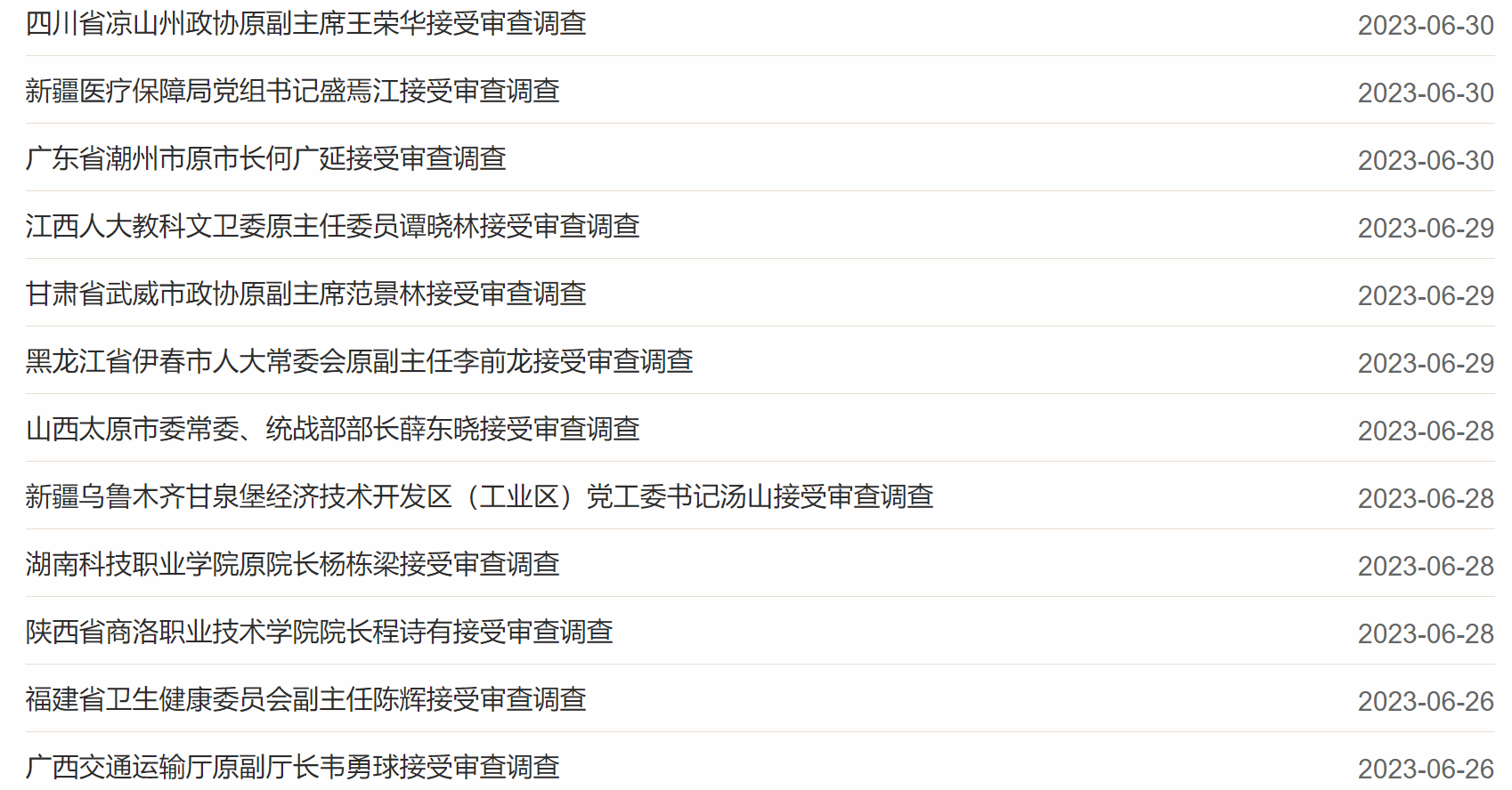另外还包括:广西壮族自治区交通运输厅原党组成员、副厅长韦勇球;湖北省恩施州副州长,州公安局党委书记、局长田军;福建省卫生健康委员会党组成员、副主任陈辉;等等。