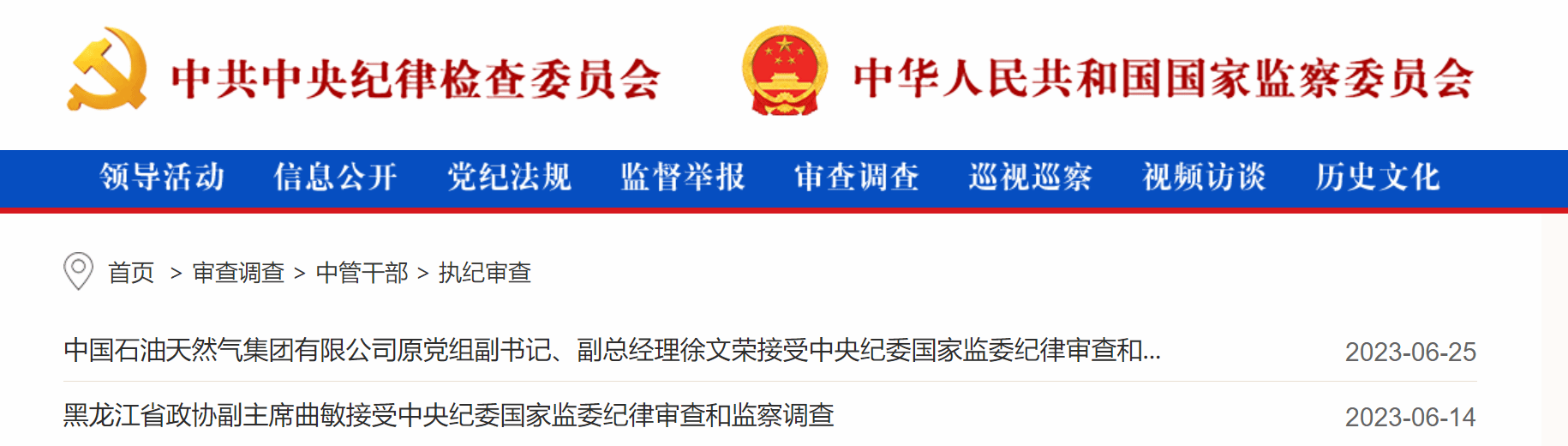 黑龙江省政协副主席曲敏接受中央纪委国家监委纪律审查和监察调查。