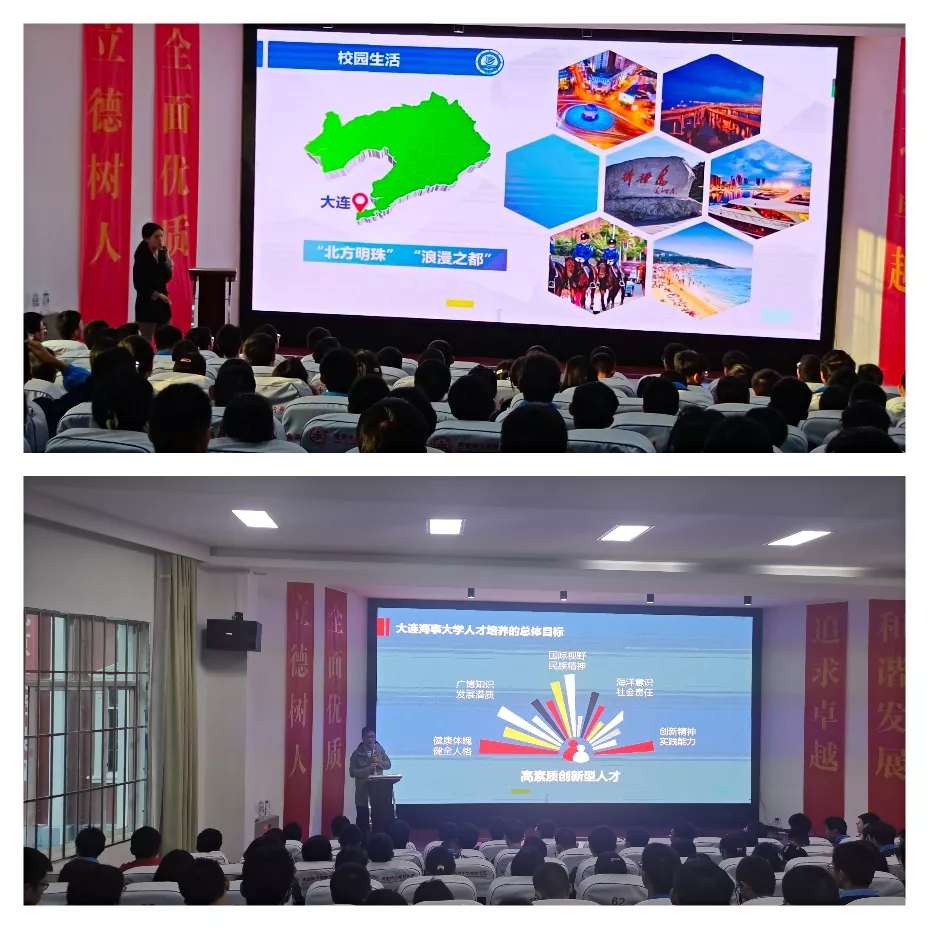 在衡水实验中学本部,招生宣传小组与校区领导就双方学校历史、办学特色等进行了深入探讨,并表示要维护好已经建立的合作关系,为国家航运事业输送更多优质血液。随后,两位教师针对清北班和文科班进行了专题讲座,参加讲座同学表现出浓厚兴趣,现场互动频繁。