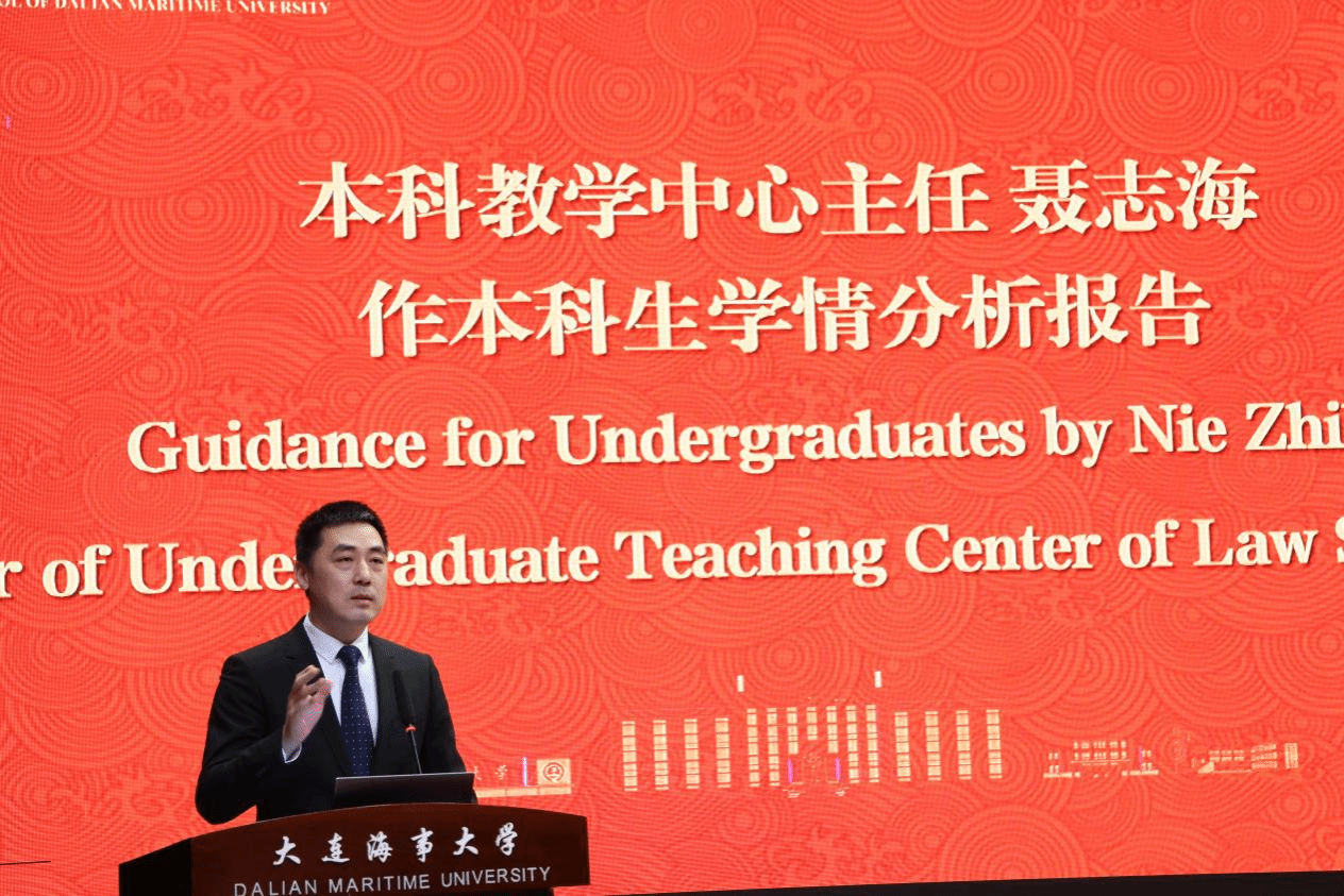 聂志海为本科生作学情分析,他在总结本科生学业规律的基础上,希望新生聚焦学习主业、保持勤奋态度、努力探索创新,在勤思笃学中增强本领,为法治中国建设不懈努力。