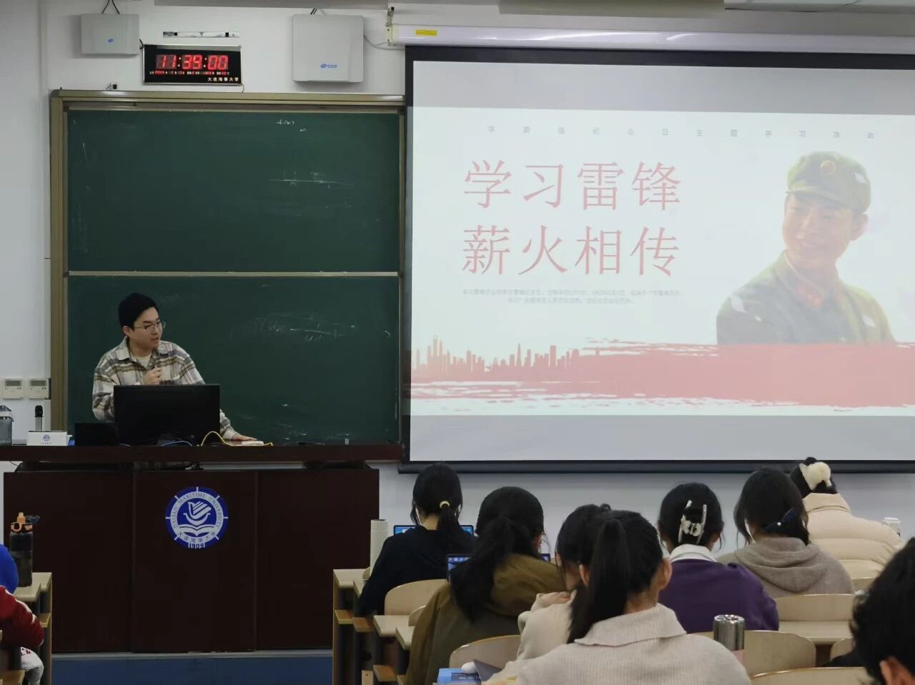 各团支部依托“三会一课”、主题班会,组织学习党的二十大精神,围绕“雷锋精神与法律人时代使命”开展专题学习。结合卫国戍边英雄、基层法治先锋等先进事迹,特别是“金城龙”精神遗产,引导学生深度探寻雷锋精神与法治信仰的时代内涵。