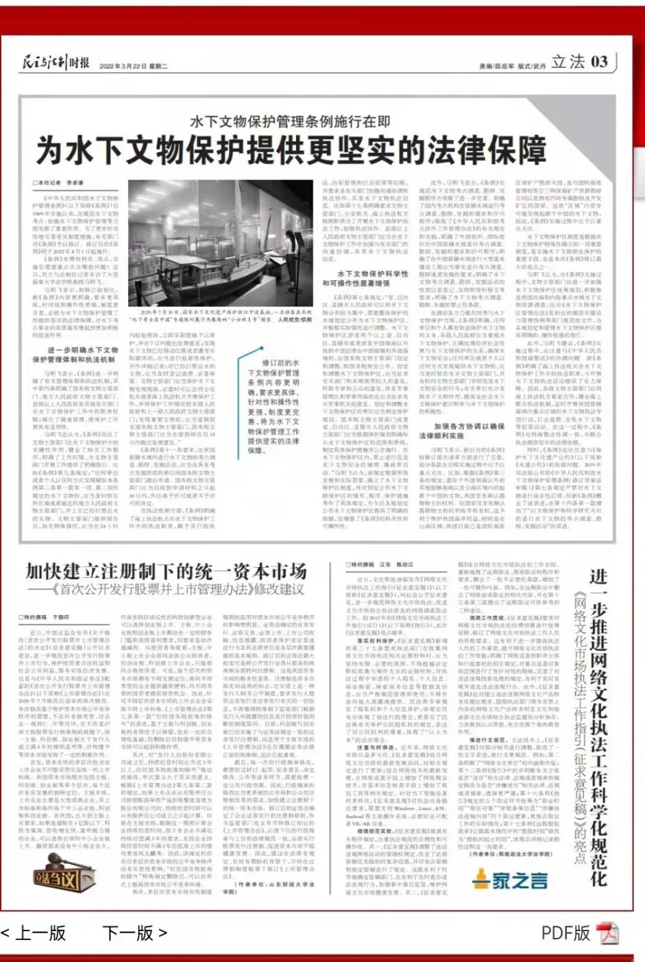 《条例》有哪些特色、亮点,实施后需要重点关注哪些问题?近日,williamhill英国马明飞教授接受民主与法制社记者采访,就“水下文物保护法律保障问题”发表观点。