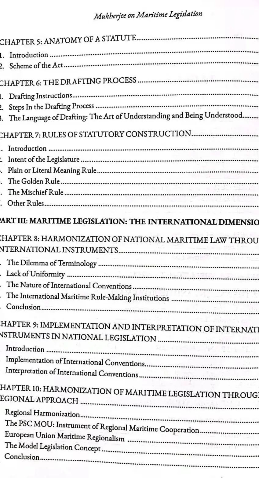 The First Edition of “Maritime Legislation” by Professor Mukherjee was completed on the basis of the author's PhD thesis and was first published in 2002. The book is a comprehensive academic work on maritime legislation and examines the nature of maritime legislation by tracing its historical evolution and seeking harmonization in terms of the theoretical aspects and the international dimension of the subject. The book also presents various legislative methodologies pertaining to the drafting of maritime legislation from both common and civil law perspectives as practical essentials.