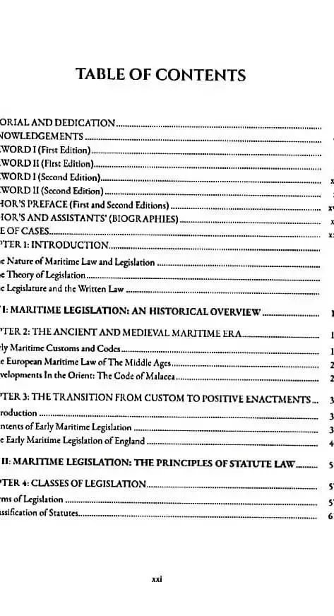 The Second Edition of the book maintains the structure of the original, with updates to several chapters. In the two chapters in Part I, the historical evolution of maritime law and legislation as well as the phenomenon of admiralty jurisdiction in the common law domain are supplemented by new materials. In Part III, the international dimension of maritime legislation has been revised substantially in the chapters focusing on regional approaches, highlighting the role of regional Memoranda of Understanding on Port State Control as illustrative of a regional approach. Part IV is supplemented and updated in light of the Maritime Labour Convention, 2006.