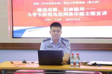7月2日,大连市公安局刑侦支队反诈中心民警于永博警官作题为“擦亮双眼,识破骗局——大学生防范电信网络诈骗”主题宣讲,结合大量发生在本地及周边高校的真实案例,生动形象地剖析了常见诈骗类型的作案手段和特点。