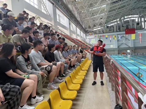 水上求生训练不仅是技能学习,更是对团队协作能力的考验。出海时,我们既领略了海上的唯美景致:宏伟的跨海大桥横跨碧波,云雾缭绕的高楼若隐若现,清风拂过,海面泛起粼粼波光…… 还意外体验了船舶碰撞的模拟场景 —— 没想到海商法中关于船舶碰撞的知识,竟以这样生动的方式提前闯入视野。回到求生馆,老师用丰富的求生经验向我们传授了如果在船上意外发生,如何最大程度的保护自己。从船上的避险行为、安全意识到意外落水后如何保持体温、水下姿势、救生衣使用等等……老师细致的介绍不仅使知识留存与脑中,还使人萌生了下水一试的打算。
