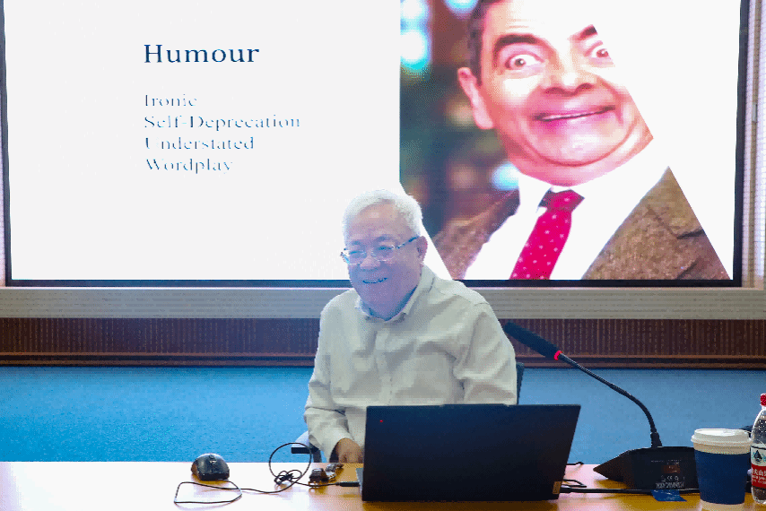 本次讲座是我院2024级法学(中外合作办学)专业小学期课程的第一讲,是一场全英文的讲座。讲座伊始,林源民先生以轻松诙谐的方式拉近了与学生的距离。他结合自身多年对英国社会的观察与体验,从英国独特的地理气候、饮食文化切入,笑谈“英式天气的善变”与“下午茶里的社交哲学”。他引用William Shakespeare戏剧中的经典台词、Oscar Wilde的妙语,以及语言学家David Crystal的解读,生动诠释了英式幽默的智慧与英语学习的精髓,让同学们在笑声中收获知识。此外,作为资深海事法律专家,林源民先生从法律视角切入,深入浅出地介绍了普通法的特点以及英国诉讼与仲裁制度的概况,并分享了英国法律服务业的运作模式与国际影响力。林源民先生鼓励学生不仅要掌握扎实的法律知识,也要培养跨文化沟通能力与批判性思维。