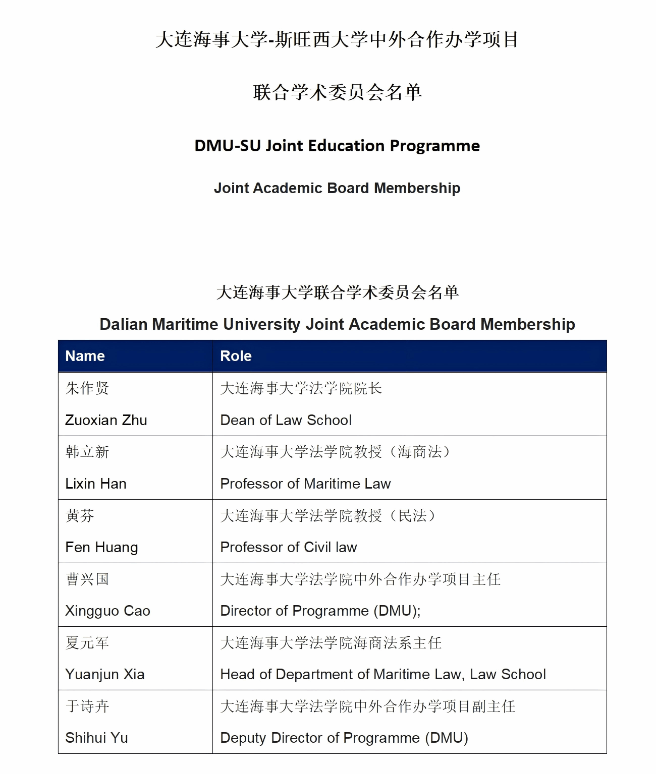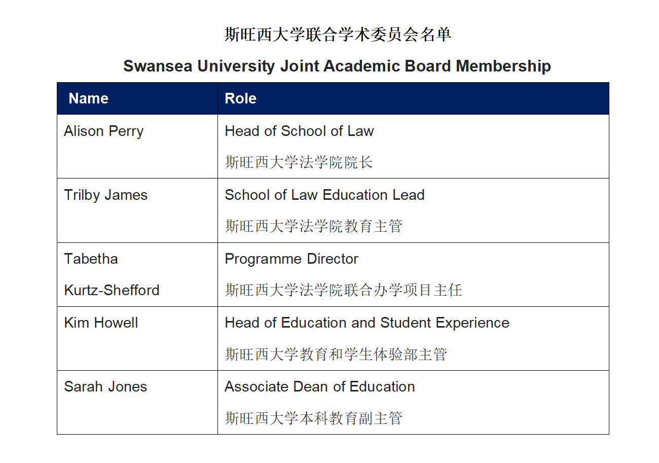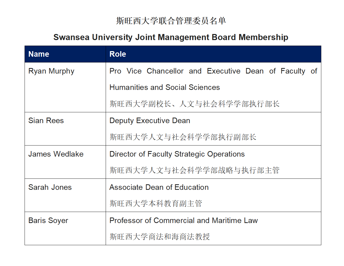 williamhill威廉希尔-斯旺西大学中外合作办学项目联合管理委员会和联合学术委员会名单 (DMU-SU Joint Education Programme JMB & JAB Membership)