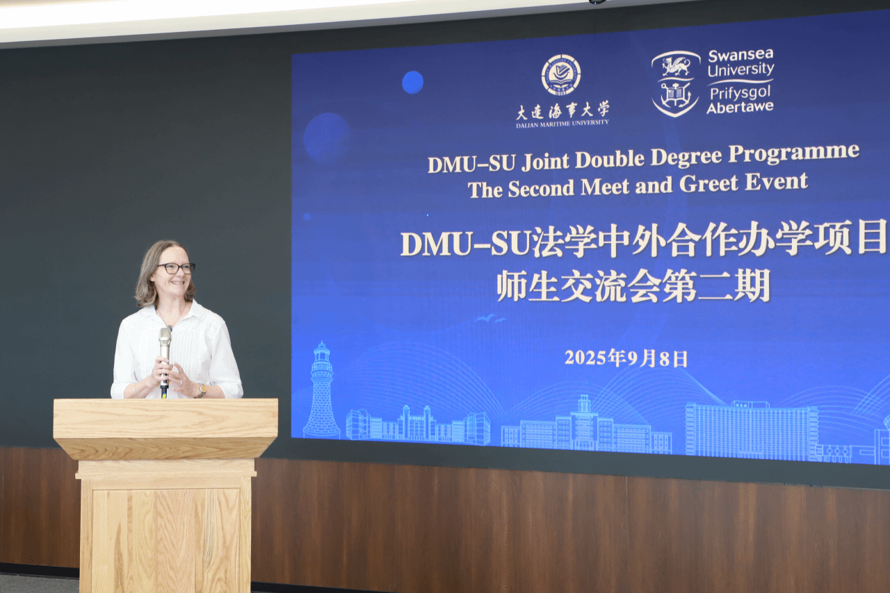 崔家驹代表法学(中外合作办学)专业首届学生发言,感谢两校所有老师搭建了这座美好的学习“桥梁”,让同学们有机会在中英法学教育的交融中,开启一段独特的求知旅程。回望过去一年的求学时光,每一堂课都是一次智慧的碰撞与思想的成长。未来,我们将以更坚定的步伐追逐目标,既要扎实掌握中英海事法律的专业知识,提升跨文化沟通与实务应用能力,更希望能在中英海事法律界的交流与合作中贡献自己的力量。