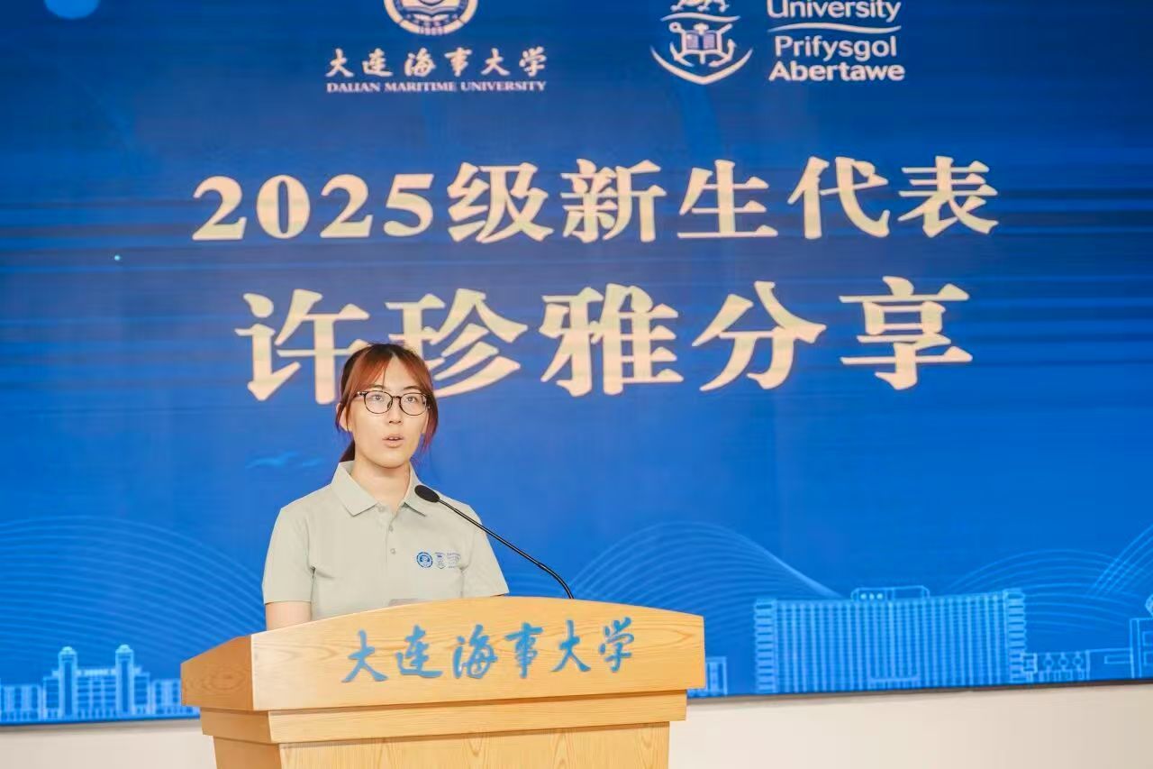 在家长代表分享环节,2025级家长代表陈康同同学的父亲通过视频方式发表了感言。作为一名长期在国外工作的家长,他对williamhill威廉希尔与斯旺西大学的合作培养模式表示高度认可,感谢中外双方为学生提供优质的学习和成长平台,鼓励同学们珍惜宝贵的四年时光,努力提升专业素养和国际视野,希望同学们像海大校歌中吟唱的那样 “知路远、守本根”,为中华民族伟大复兴贡献力量。此外,他朗诵了在孩子离开家门、前往大连之际自己写下的一首小诗(详见文末),作为献给全体同学的寄语。