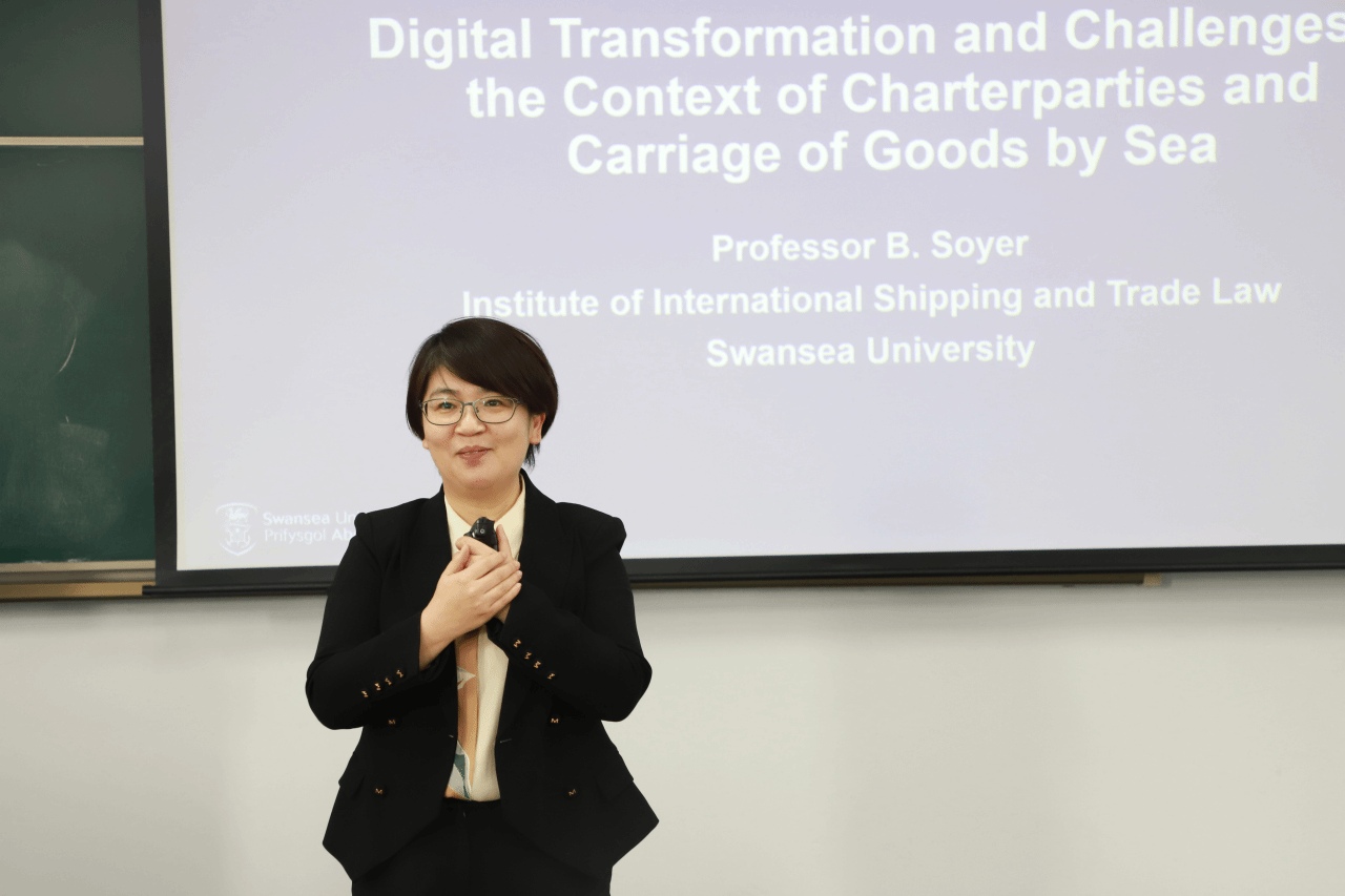 第一场讲座的主题是“Digital Transformation and Challenges in the Context of Charterparties and Carriage of Goods by Sea(租船合同与海上货物运输的数字化转型与挑战)”。讲座由williamhill威廉希尔休斯顿国际学院院长张金蕾主持。