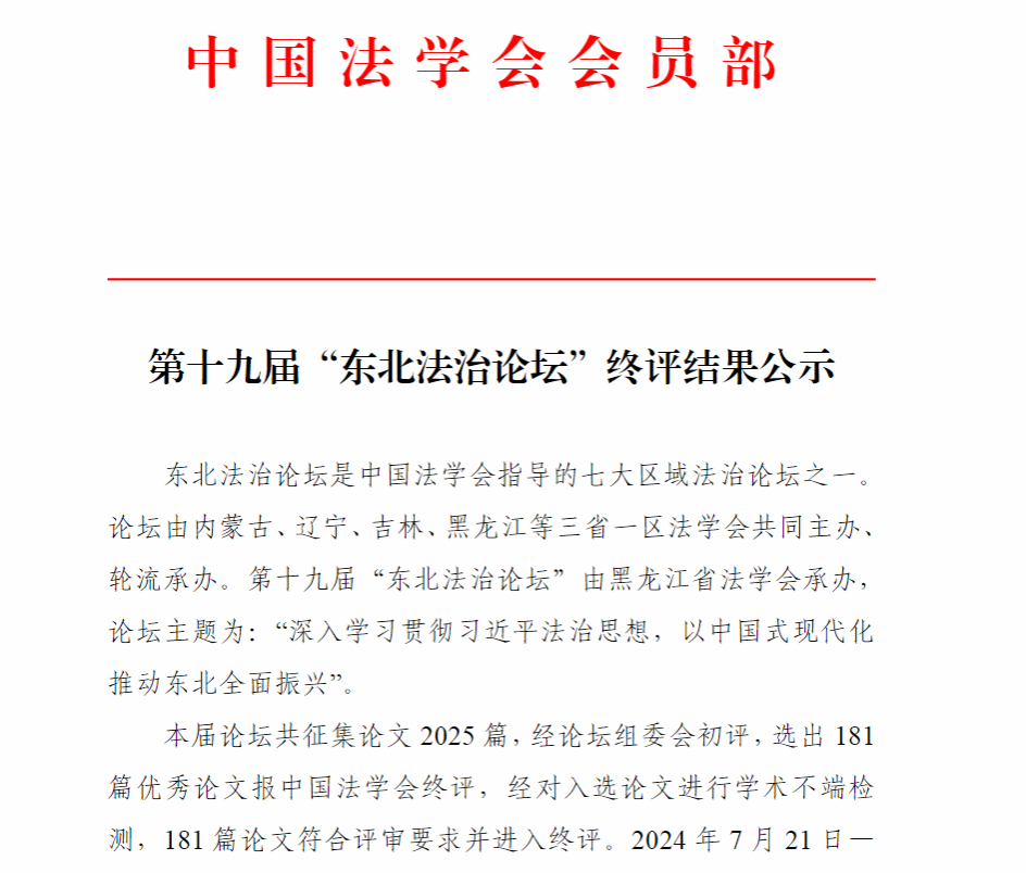 7月29日,中国法学会会员部第十九届东北法治论坛组委会发布了第十九届“...