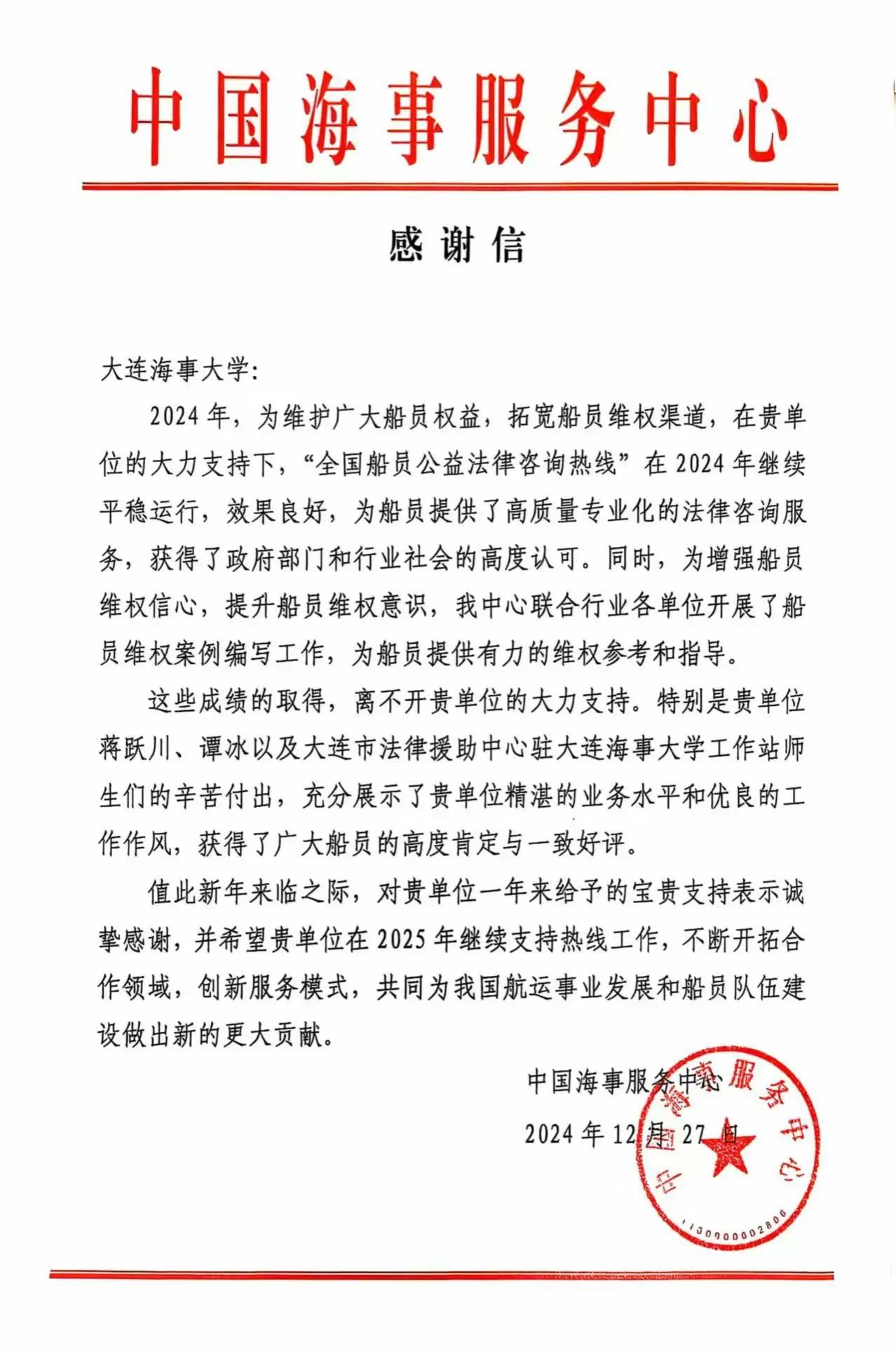 近日,我校收到中国海事服务中心感谢信。感谢信中指出,在williamhill威廉希尔...