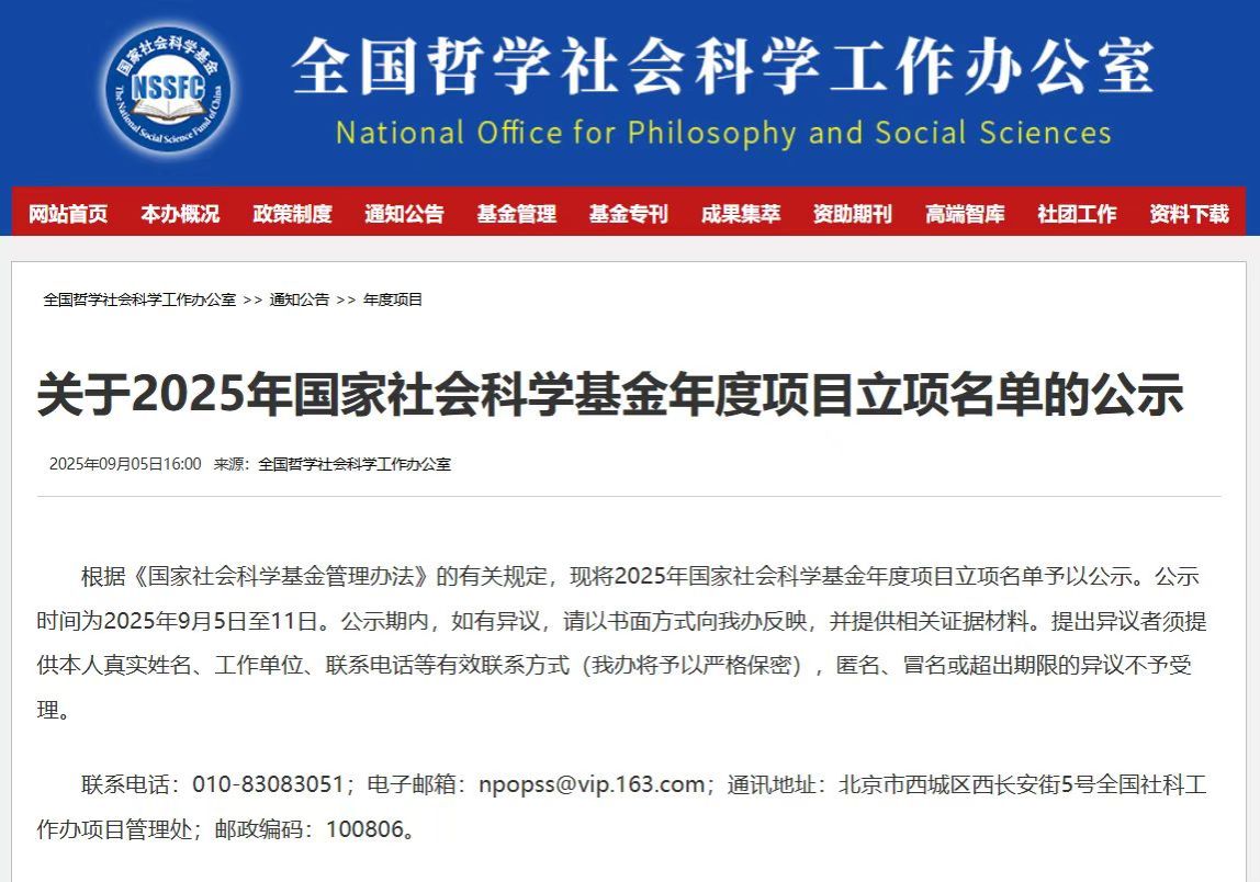 近日,全国哲学社会科学工作办公室公示了《2025年国家社会科学基金年度...